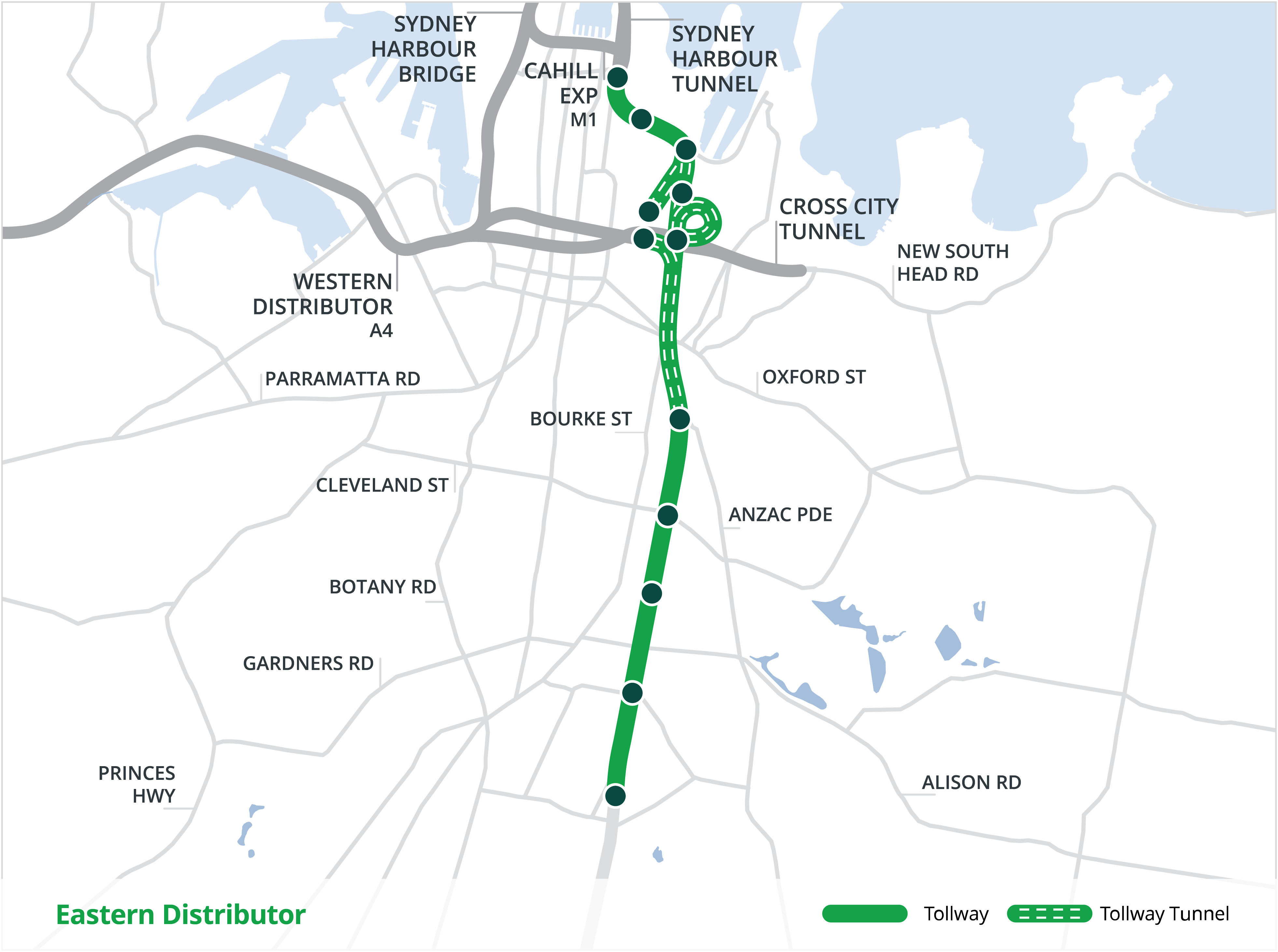 A 6 km motorway and an important link in Sydney’s orbital motorway network. It features a 1.7 km ‘double deck’ tunnel, with southbound lanes running underneath the northbound lanes.