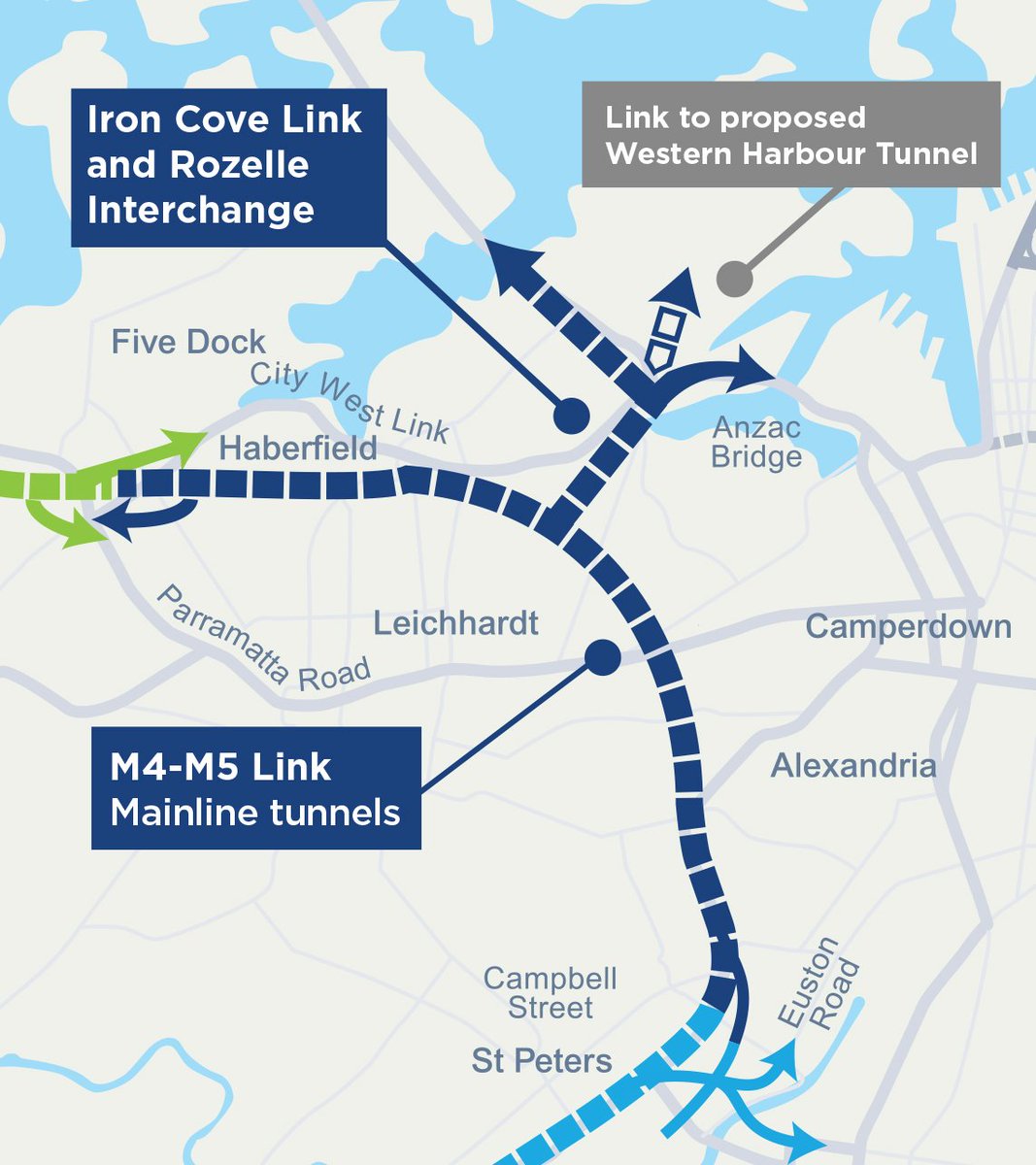 The M4-M5 Link Tunnels project is the final and most critical component of WestConnex, featuring twin tunnels between the New M4 at Haberfield and the New M5 at St Peters. Each tunnel will be approximately 7.5 kilometres long and able to accommodate up to four lanes of traffic in each direction.